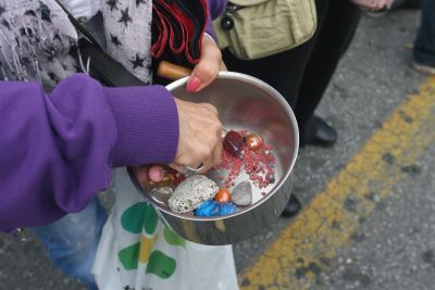 Οι διαδηλωτές φωνάζουν συνθήματα, χτυπώντας τις κατσαρόλες τους, θυμίζοντας εικόνες που είχαμε δει το 1981 που φώναζαν οι νεόπλουτες κυρίες πεινάμε. Πάντως το νύχι δείχνει ότι η κυρία είναι εργάτρια σε φάμπρικα.